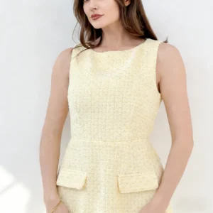 If you are searching for a ladies dress manufacturer that delivers exceptional quality with flexible minimum order quantities, you have found the right supplier. We specialize in crafting premium tweed dresses for global retailers, boutiques, and private label brands, with the Athenia Tweed Pocket Detail Mini Dress Yellow as our signature tweed staple.