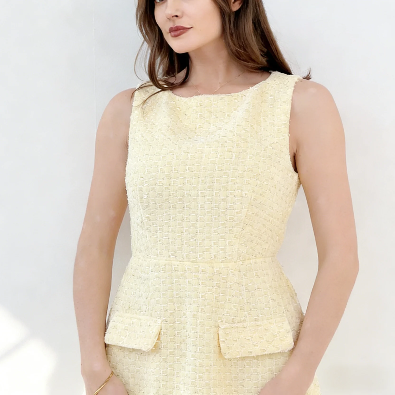 A versatile tweed mini dress that seamlessly bridges casual and formal occasions, featuring classic tweed craftsmanship and practical pocket detailing for style and function. The flattering yellow tweed design offers timeless charm, while the mini length and premium fabric ensure durability and all-day comfort. Pair with trainers for weekends or heels for evenings—an essential staple for fashion-forward wardrobes.